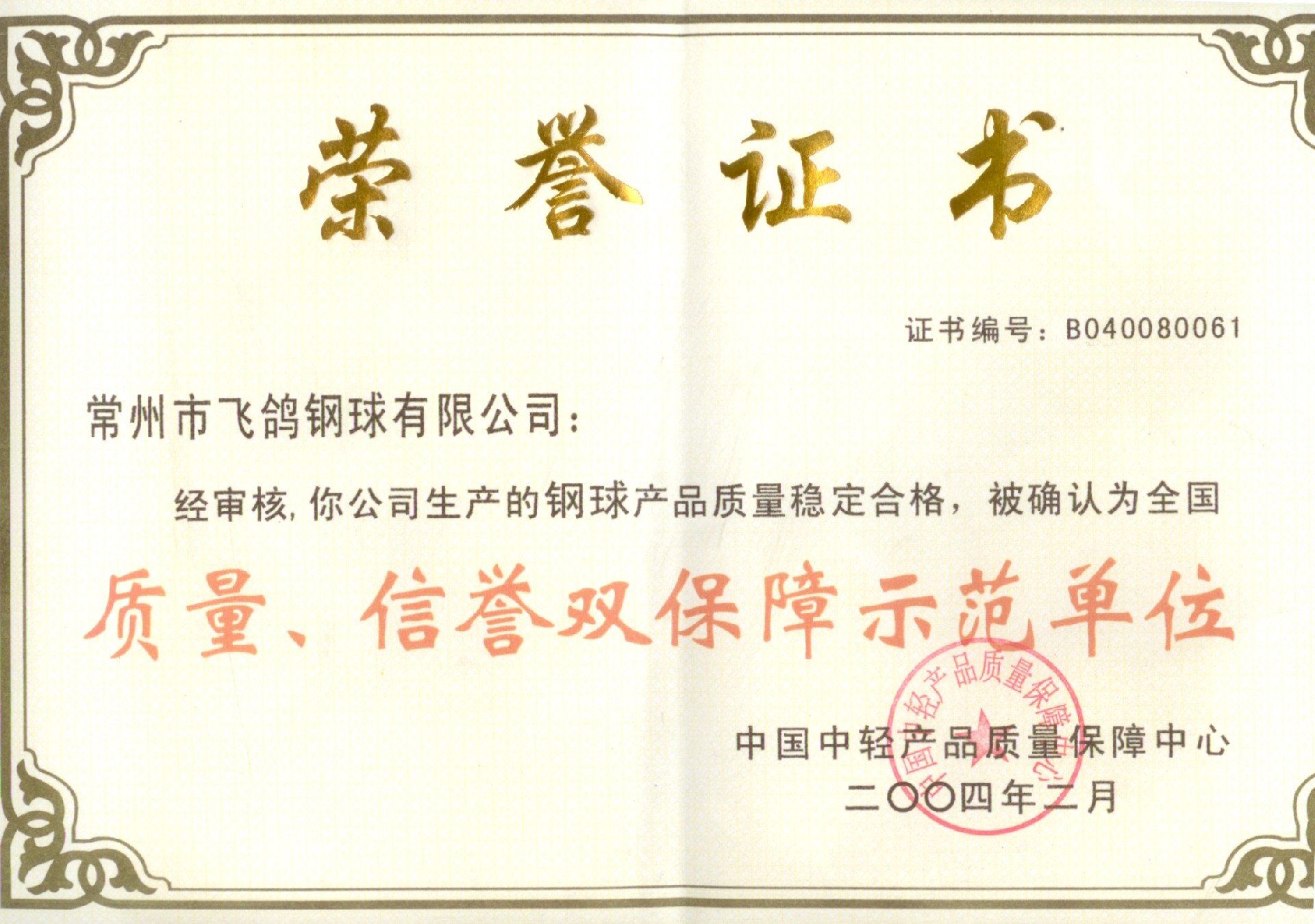 自公司創(chuàng)建以來(lái),一直堅(jiān)持科學(xué)管理,優(yōu)質(zhì)求實(shí),服務(wù)顧客,持續(xù)改進(jìn)的質(zhì)量方針,以服務(wù)為導(dǎo)向,崇尚安全第一、品質(zhì)至上、客戶為尊,多年來(lái),飛鴿鋼球已成為國(guó)內(nèi)外廣大客戶信賴的產(chǎn)品。