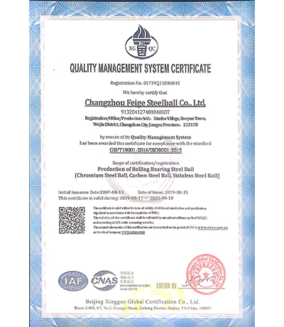 本公司現(xiàn)擁有專業(yè)技術(shù)人員30余名,有各種專用鋼球檢測(cè)設(shè)備五十余臺(tái)套,為穩(wěn)定產(chǎn)品質(zhì)量,現(xiàn)已通過(guò)ISO9001質(zhì)量體系認(rèn)證以及IATF16949國(guó)際汽車工作組認(rèn)證。