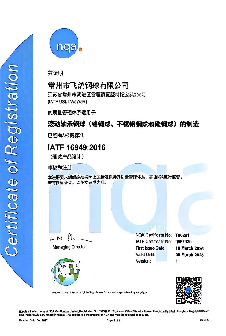 公司通過了ISO9001和ATF16949認證。占地面積 18.000 平方米,包括辦公室、車間、倉庫和實驗室。這個先進的實驗室配備了經過精心培訓的全球知名機器,并由經過適當培訓的合格人員進行管理。飛鴿仍然在不斷投資設備來測量和確保達到圓度,表面,直徑和硬度的規格。