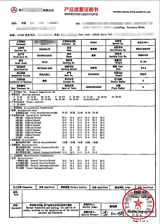 優(yōu)質(zhì)軸承鋼用于制造鋼球,核心優(yōu)勢集中在材質(zhì)純凈度、力學(xué)性能、加工適配性三大方面,術(shù)語通俗解讀,邏輯清晰不混雜。材質(zhì)純凈度上,優(yōu)質(zhì)軸承鋼采用“電爐+LF+VD”三聯(lián)精煉工藝,嚴格控制氧含量≤5ppm,非金屬夾雜物尺寸控制在10μm以內(nèi),無有害雜質(zhì)殘留,從源頭避免鋼球內(nèi)部出現(xiàn)氣孔、裂紋等缺陷,確保鋼球整體結(jié)構(gòu)均勻致密,這也是其區(qū)別于普通鋼材的核心特質(zhì)。
